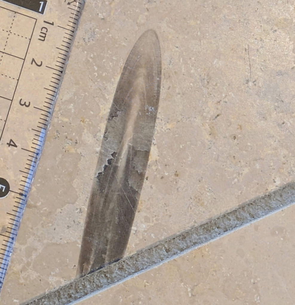 今回は(1)より左側の範囲、コンビニの前あたりや、エレベーターホールの一部、ラウンジ周辺で見つけた化石などを載せたいと思います。
