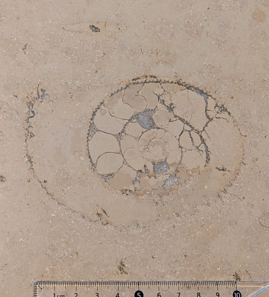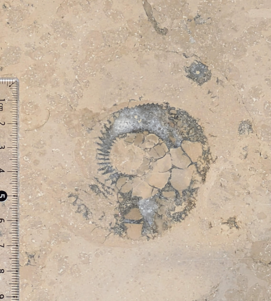「虎ノ門アルセアタワー」の街化石・前編(こちら)に続き、今回もドイツ産大理石のジュライエロー、ジュラマーブルイエローに見られる化石を見ていきたいと思います。