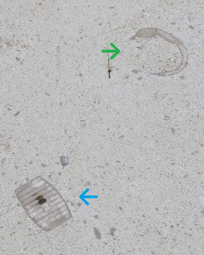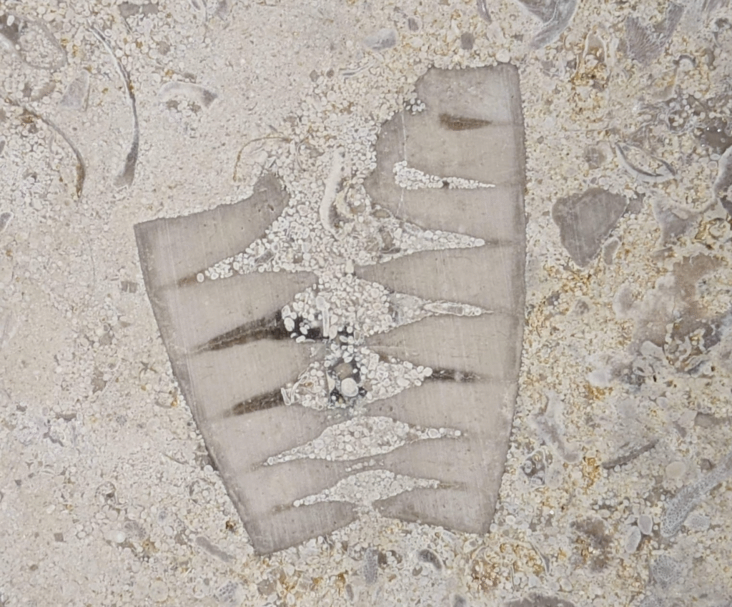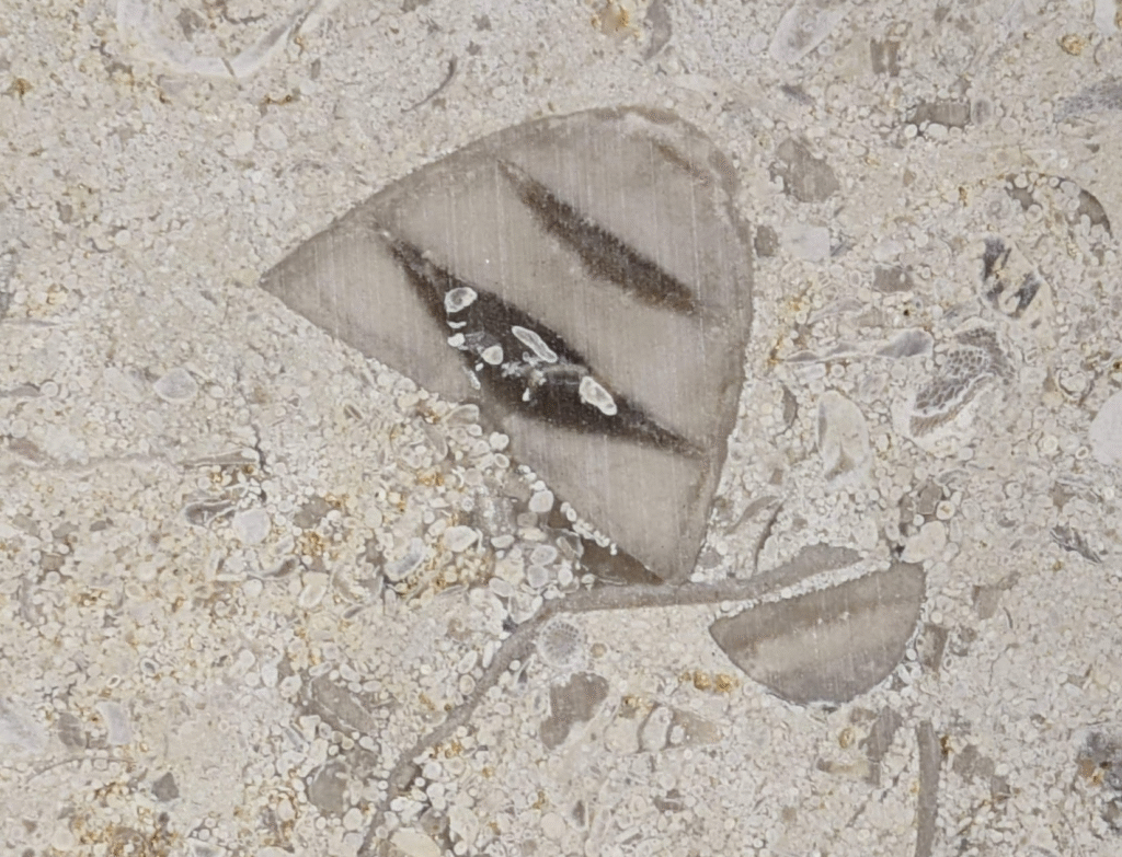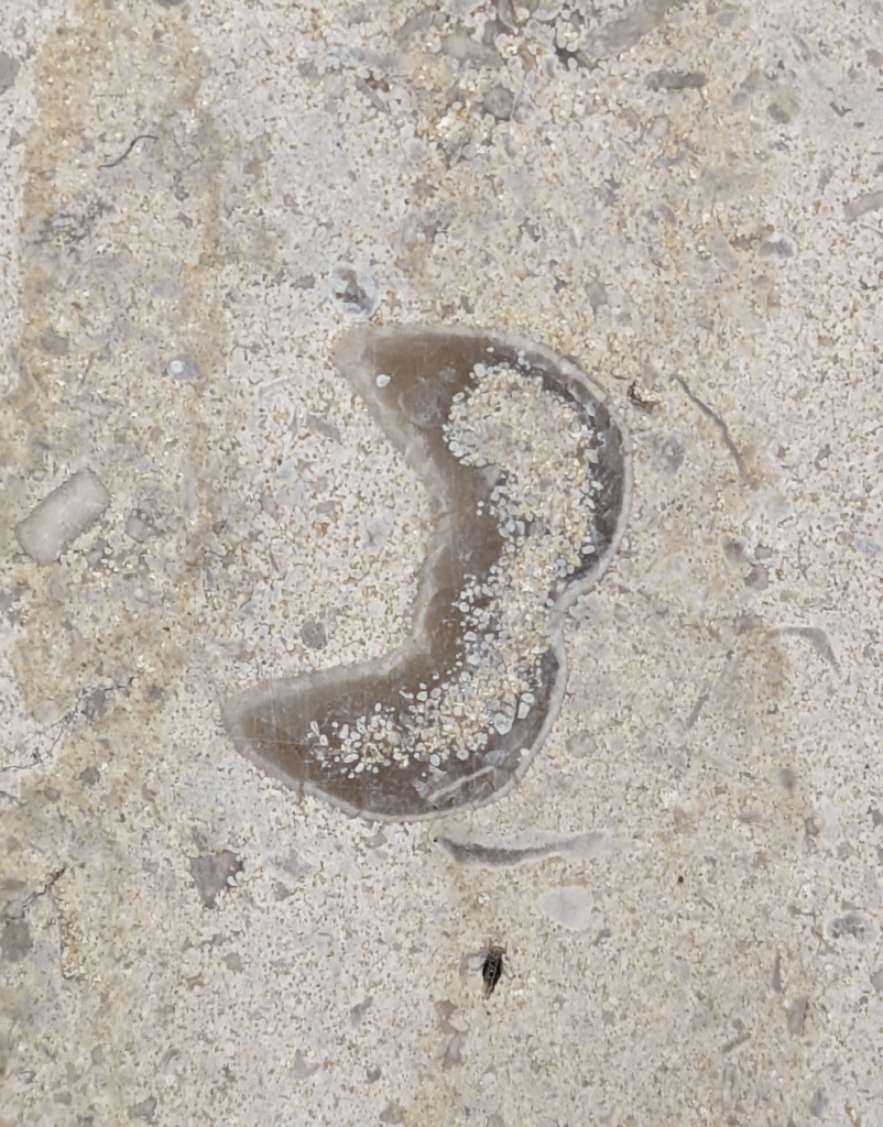 一部結晶化している部分もありますが、腕足類と思われる化石もありました。