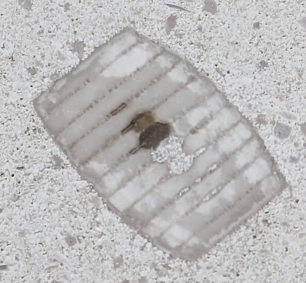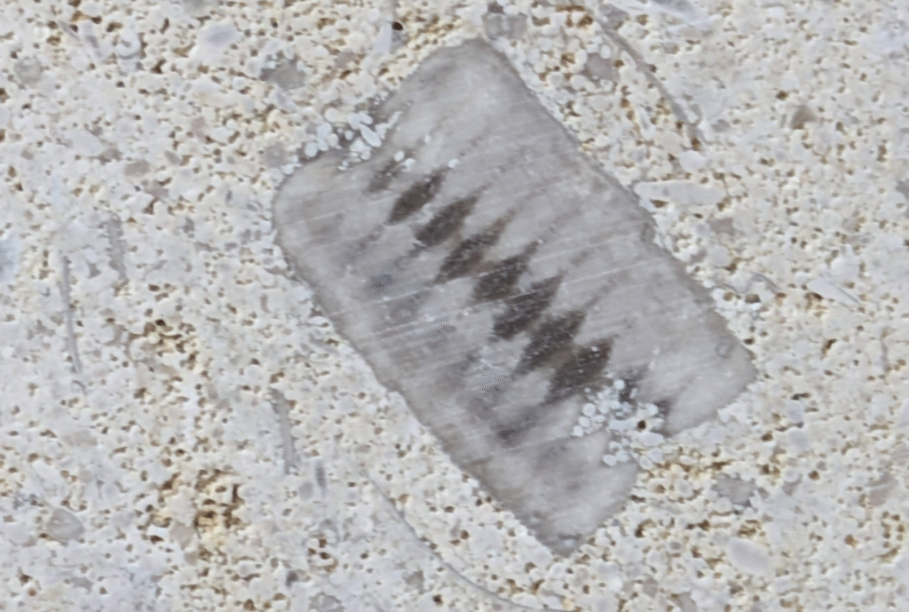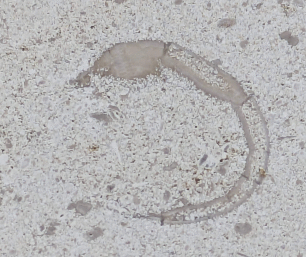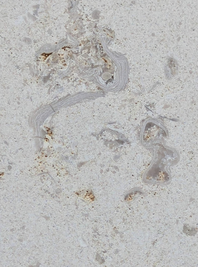 一部結晶化している部分もありますが、腕足類と思われる化石もありました。