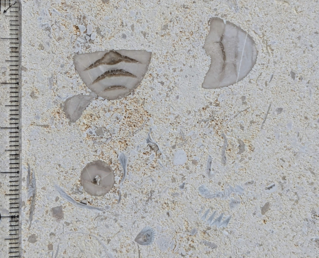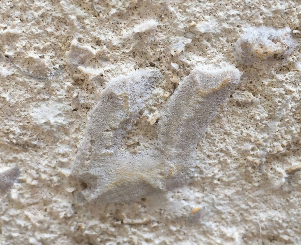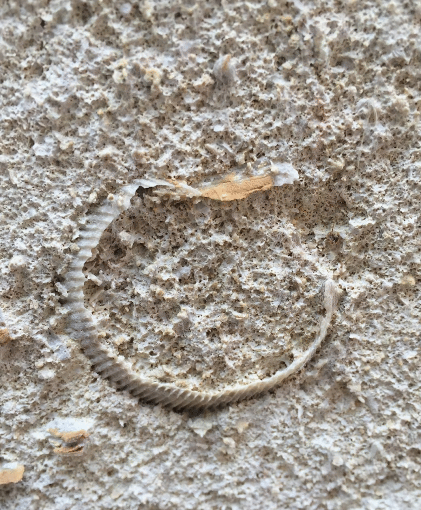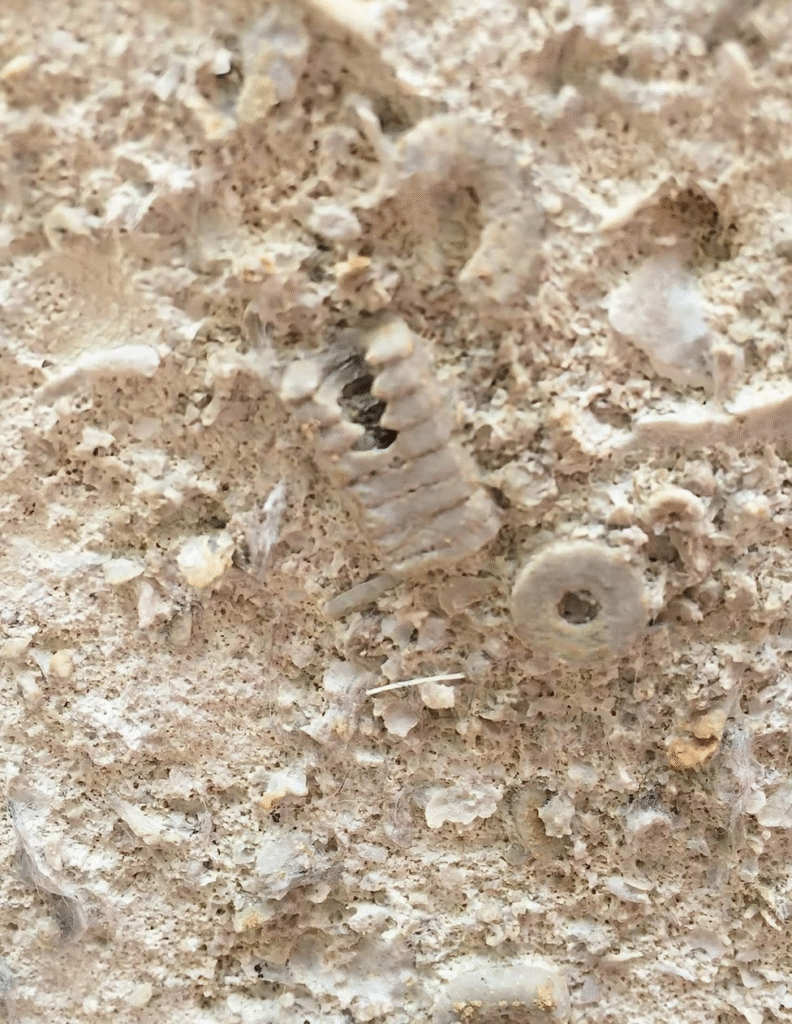 群体のコケムシの化石も多く見られます。