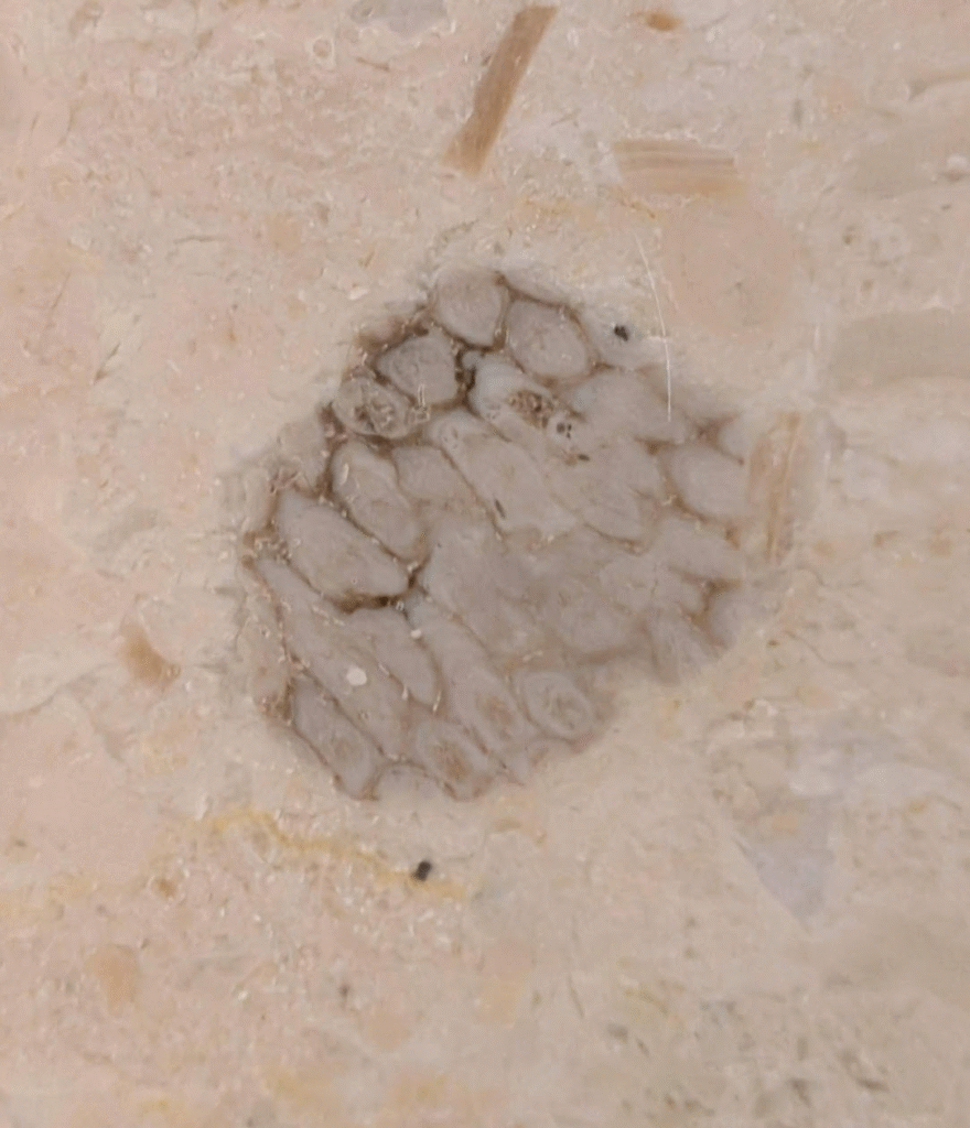 群体のコケムシ化石も色々な断面の物が数多く見られます。