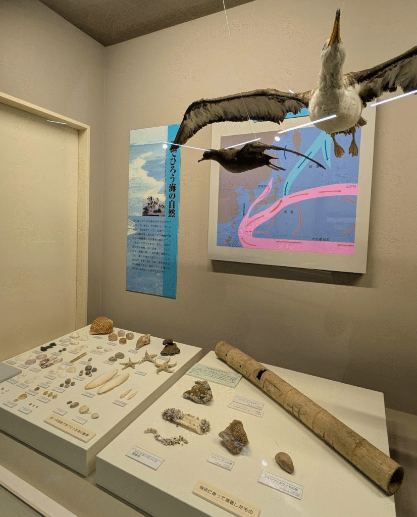 人間の出すプラスチック等のゴミや危険な漂着物が自然を破壊している事を考えさせる展示もありました。
