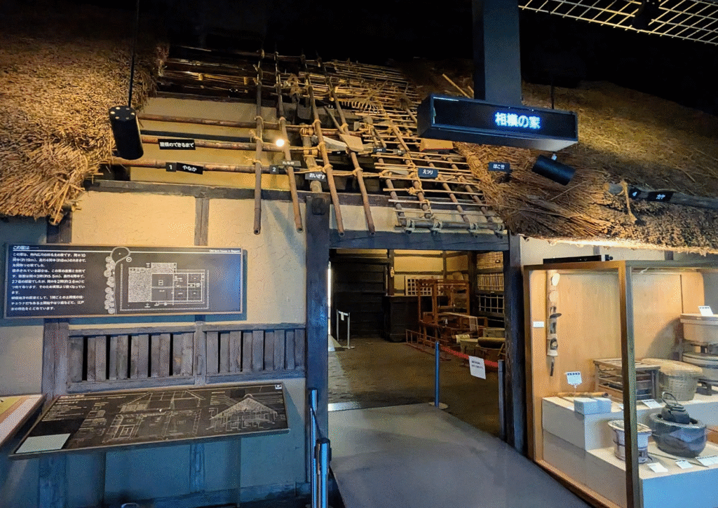 6.のおにぎりや農業の道具展示と関連して驚いた展示がこちら。1階にある、民家ごと移築し復元された「相模の家」。