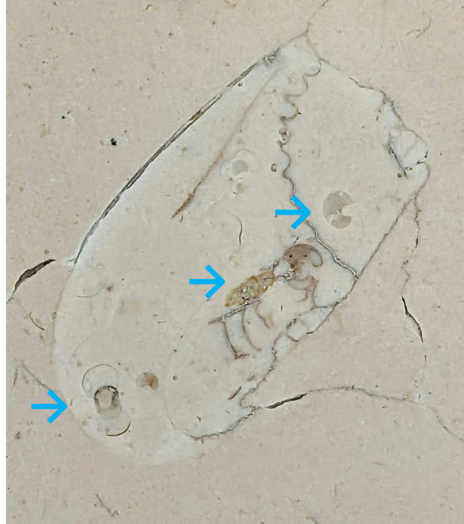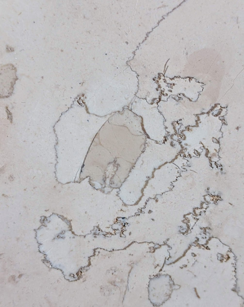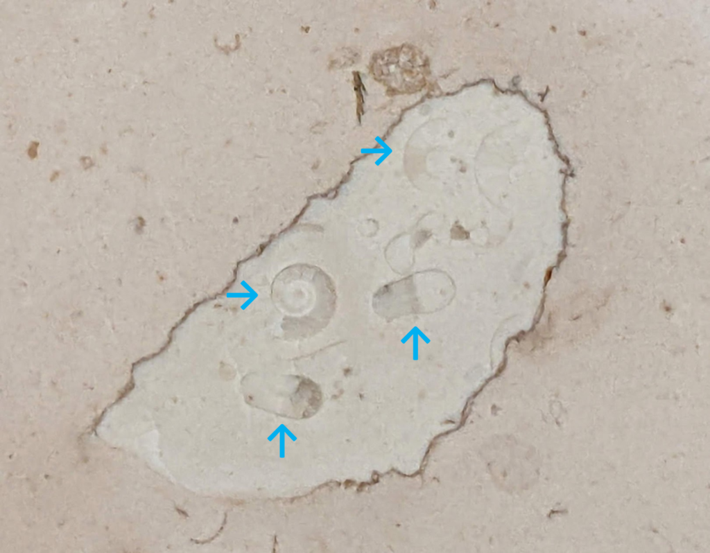 ネロマルキーナ、ペルリーノキャーロ石材中の化石