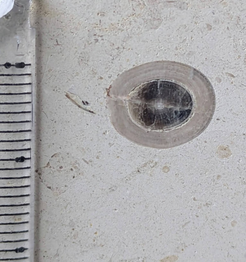 円形の輪切り横断面も日光に照らされて同心円状の成長線までくっきりと見えて綺麗✨直径1cm程の物です。