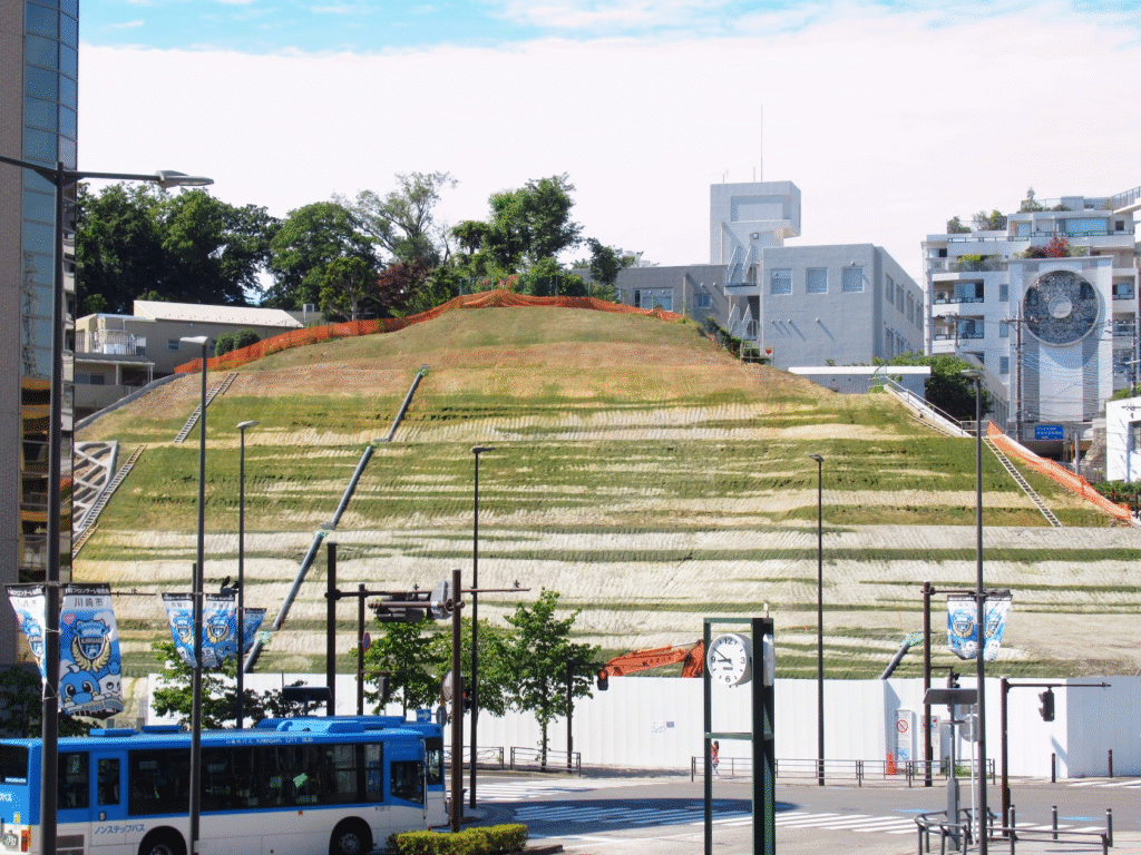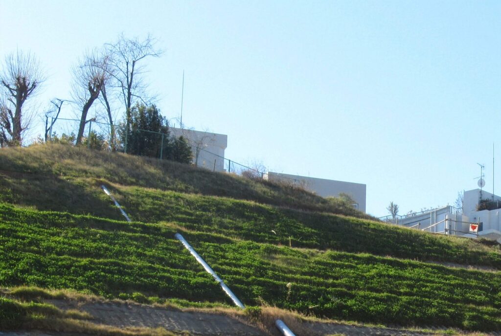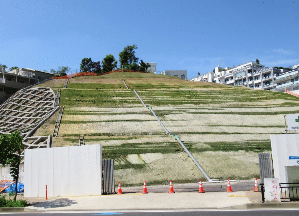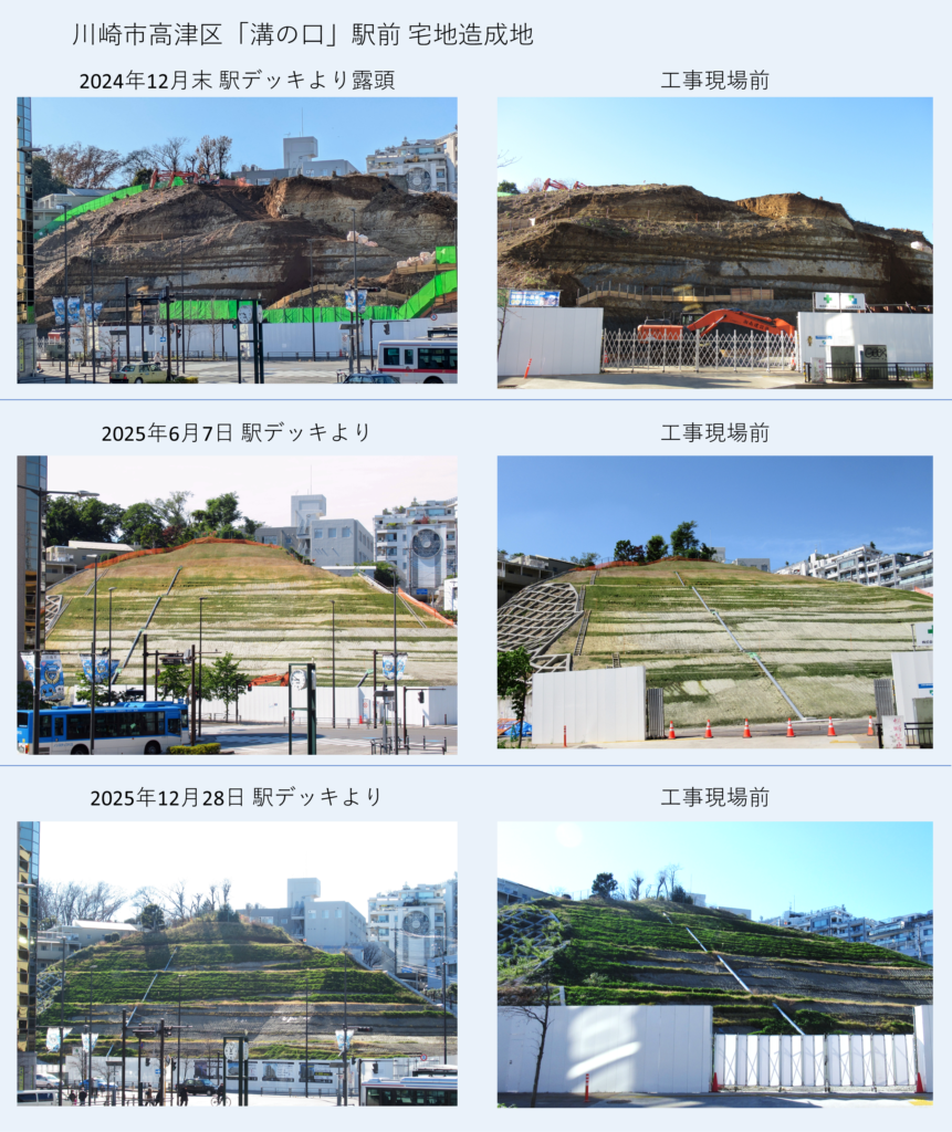 2025.12.28再訪。崩落止めの植物もかなり育っていました(当然ですが…) 工事計画表が掲げられていて令和8年1月着工 令和11年12月完成予定で地上24階地下1階の物件とのこと。去年の同時期には大露頭が見えていたのですよね…また工事経過観察させていただきたいと思います 🙇