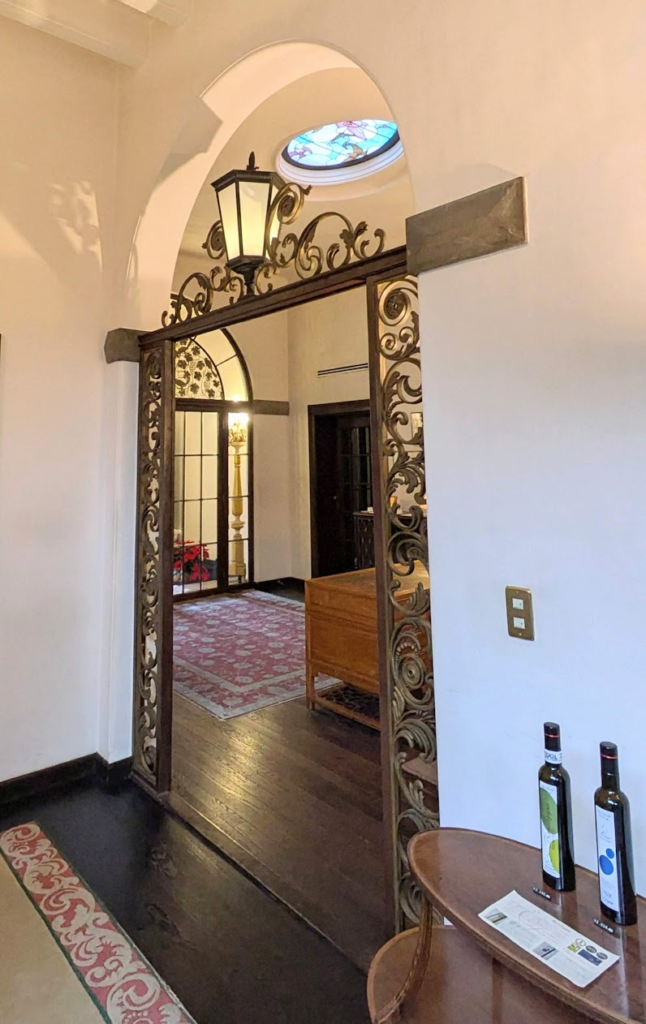 ここで振り返ると(2)のように玄関ホールが見えます。空間を区切る上部の鉄細工が美しい✨