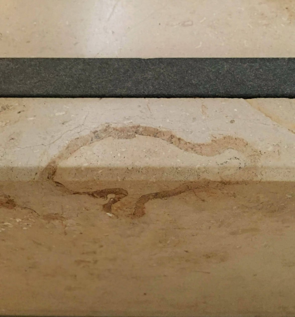 明るさが抑えられている中でも(2)の海綿動物のように段差部分に張り付いて見える👀化石がありました。